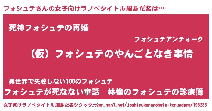 | 男性向けラノベタイトル風あだ名 | 『フォシュテの憂鬱』 |