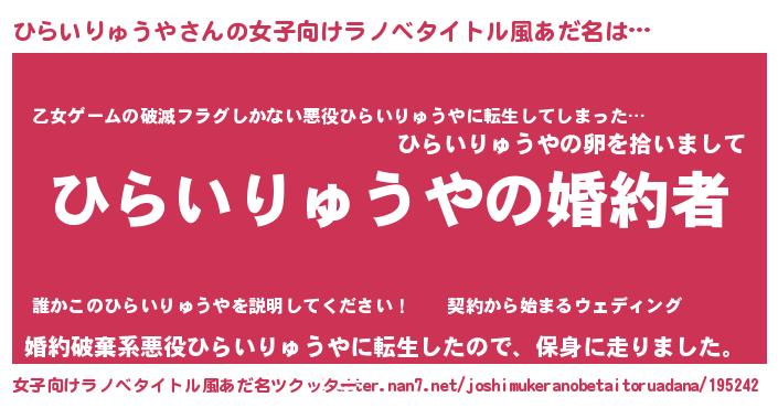 | 胡散臭い通販商品みたいなあだ名 | 『運命の人と巡り会える高級そうな皿…その名も「ひらいりゅうや」』 |