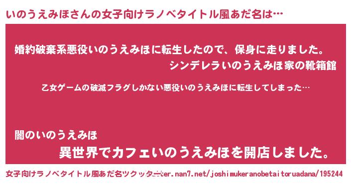 | 男性向けラノベタイトル風あだ名 | 『魔弾の王といのうえみほ』 |
