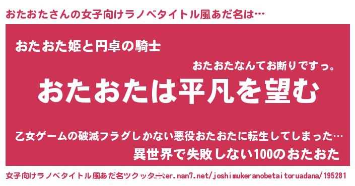 | 胡散臭い通販商品みたいなあだ名 | 『信頼と実績のサプリメント…その名も「おたおた」』 |