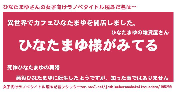 | 意味不明あだ名 | 『とにかく怪しいひなたまゆ』 |