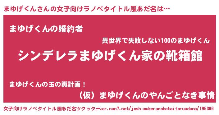 | 男性向けラノベタイトル風あだ名 | 『緋弾のマユゲクン』『まゆげくんの憂鬱』 |