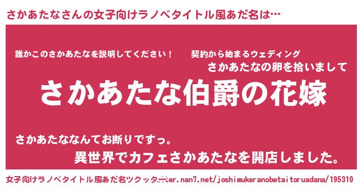 | 意味不明あだ名 | 『さかあたなフォーエバー』 |