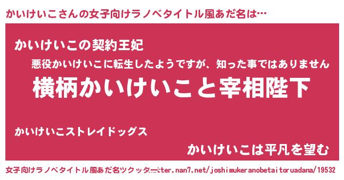 | ヒーロー風カッコイイあだ名 | 『ネオカイケイコ』『魔戒騎士カイ』 |