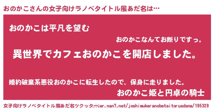 | 男性向けラノベタイトル風あだ名 | 『誰もが恐れるあのおのかこが、ぼくの専属メイドになるようです。』 |