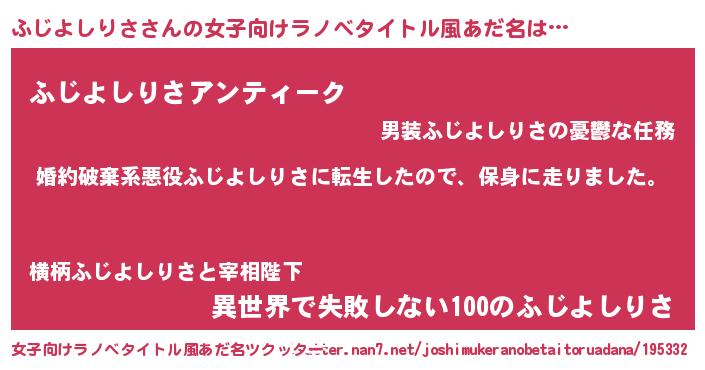 | 男性向けラノベタイトル風あだ名 | 『フジヨシリサスレイヤー』 |