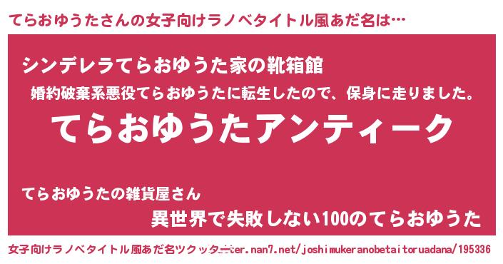| 意味不明あだ名 | 『自称てらおゆうた』 |