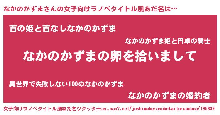 | 男性向けラノベタイトル風あだ名 | 『なかのかずまの嫁は女の子じゃないと思った?』 |