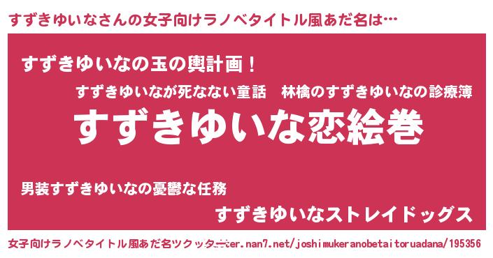 | ヘコむあだ名 | 『すずきゆいな(笑)』『なまこ酢』 |