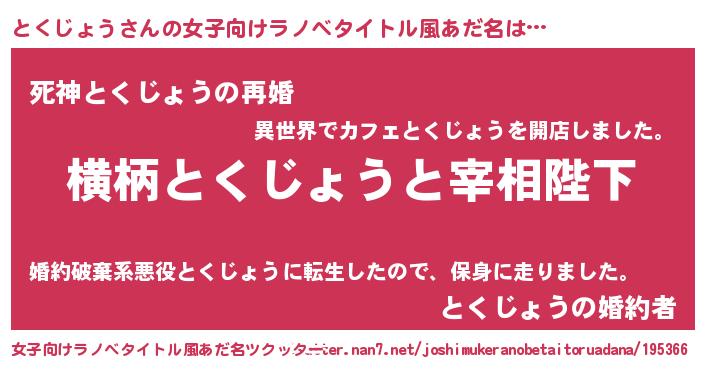 | ヒーロー風カッコイイあだ名 | 『慈愛の使者とくじょう』『仮面トクダー』 |