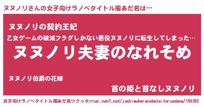 | ヘコむあだ名 | 『ヌヌノリ(苦笑)』『豆乳』『ヌヌを』 |