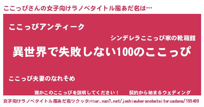 | 男性向けラノベタイトル風あだ名 | 『ここっぴという概念が存在しない退屈な世界 』 |