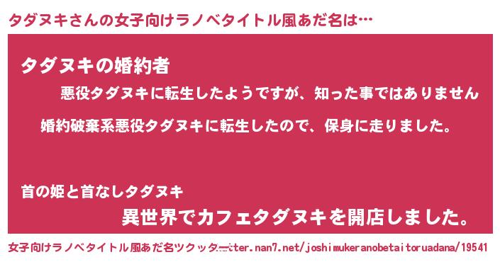 | 男性向けラノベタイトル風あだ名 | 『タダヌキスレイヤー』 |