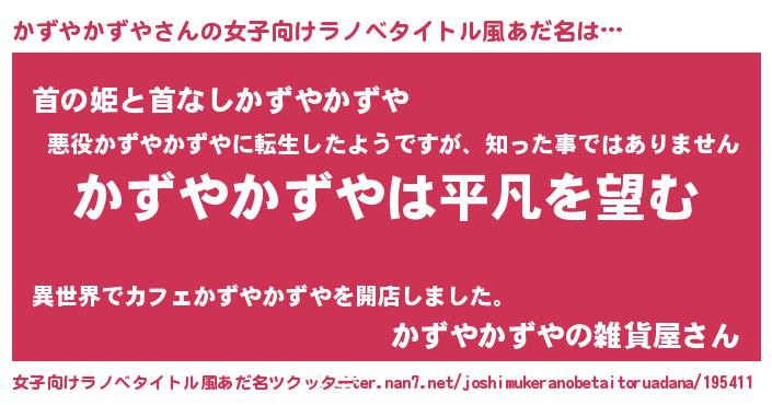| 男性向けラノベタイトル風あだ名 | 『ダンジョンにかずやかずやを求めるのは間違っているだろうか』 |