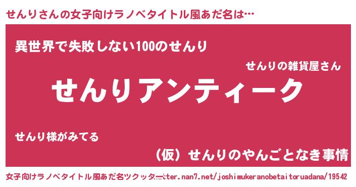 | 男性向けラノベタイトル風あだ名 | 『魔法科高校のせんり』『せんりの憂鬱』 |