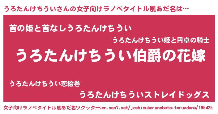 | 男性向けラノベタイトル風あだ名 | 『やはりうろたんけちういの青春ラブコメはまちがっている 』 |