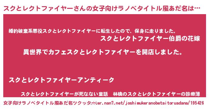 | 意味不明あだ名 | 『永久保存スクとレクトファイヤー』 |