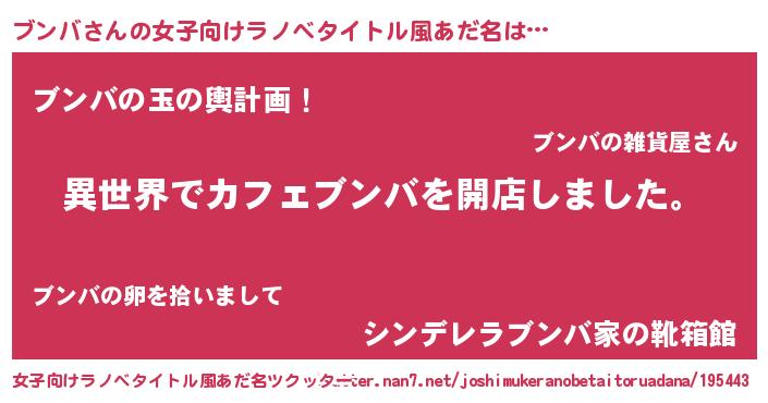 | 男性向けラノベタイトル風あだ名 | 『誰もが恐れるあのブンバが、ぼくの専属メイドになるようです。』 |