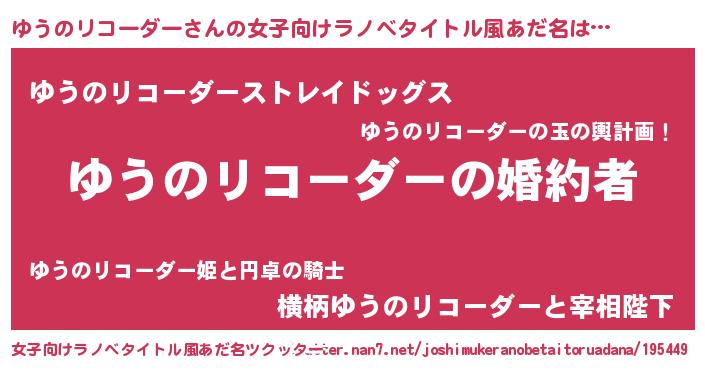 | 意味不明あだ名 | 『ゆうのリコーダーフォーエバー』 |