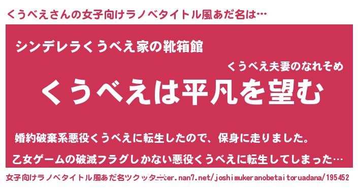 | 胡散臭い通販商品みたいなあだ名 | 『信頼と実績のネックレス…その名も「くうべえ」』 |