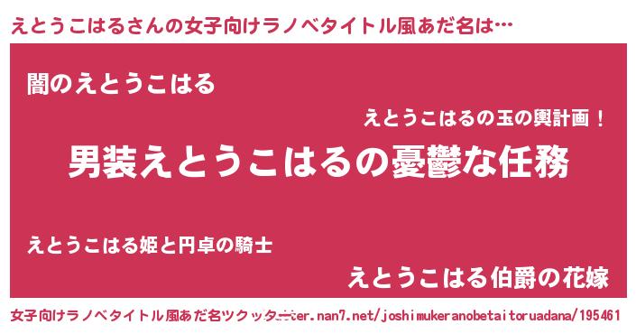 | 意味不明あだ名 | 『自称えとうこはる』 |