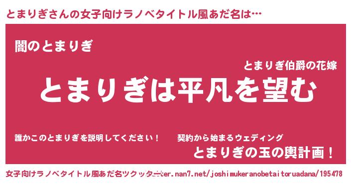 | 胡散臭い通販商品みたいなあだ名 | 『信頼と実績のペンダント…その名も「とまりぎ」』 |