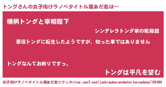 | 意味不明あだ名 | 『住所不定無職トング(98歳)』『自称トング』 |