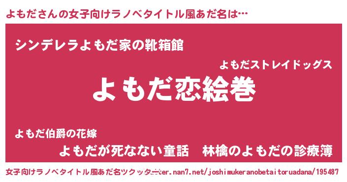 | 男性向けラノベタイトル風あだ名 | 『ノーゲーム・ノーヨモダ』 |