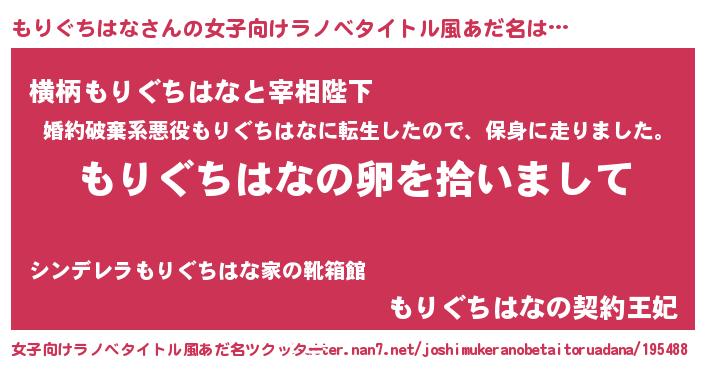 | 胡散臭い通販商品みたいなあだ名 | 『伝統あるサプリメント…その名も「もりぐちはな」』 |
