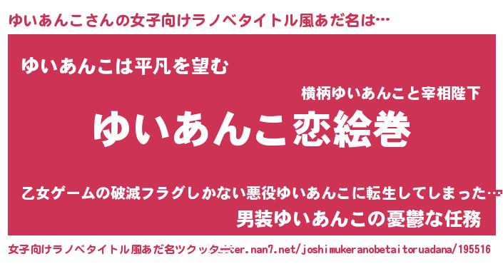 | 男性向けラノベタイトル風あだ名 | 『おまえをオタクにしてやるから、俺をゆいあんこにしてくれ! 』 |
