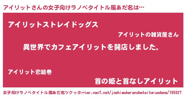 | 意味不明あだ名 | 『永久保存アイリット』『自称アイリット』 |