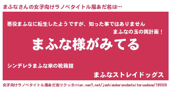 | 意味不明あだ名 | 『とにかく怪しいまふな』『自称まふな』 |