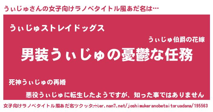 | 男性向けラノベタイトル風あだ名 | 『うちのうぃじゅが世界を掌握している!』 |
