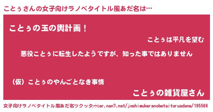 | ヒーロー風カッコイイあだ名 | 『仮面コトダー』『ウルトラことぅマン』 |