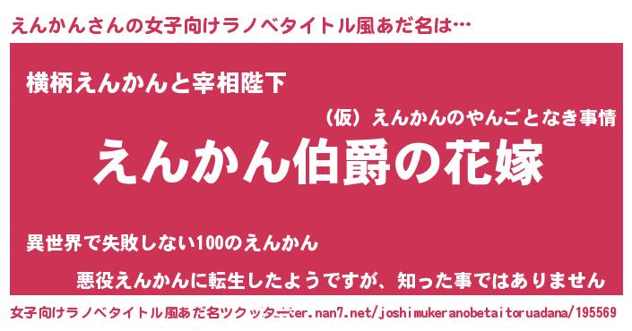 | 肩書あだ名 | 『えんかん総理大臣』『えんかん教官』 |