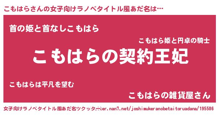 | 意味不明あだ名 | 『永久保存こもはら』『ペロリンこもはら』 |