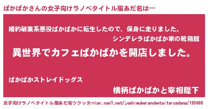 | 男性向けラノベタイトル風あだ名 | 『誰もが恐れるあのばかばかが、ぼくの専属メイドになるようです。』 |