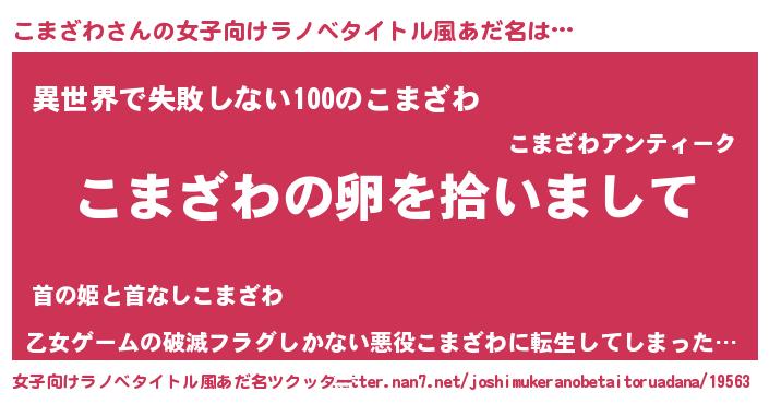 | 意味不明あだ名 | 『とにかく怪しいこまざわ』 |