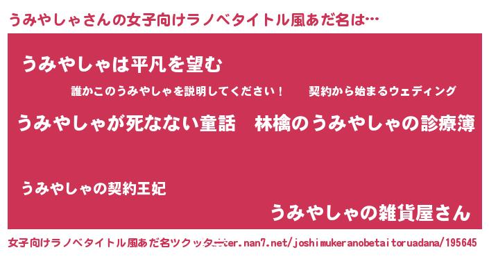 | 欧米人風あだ名 | 『ダレノガレうみやしゃ』 |