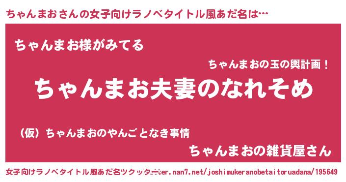 | 男性向けラノベタイトル風あだ名 | 『おまえをオタクにしてやるから、俺をちゃんまおにしてくれ! 』 |