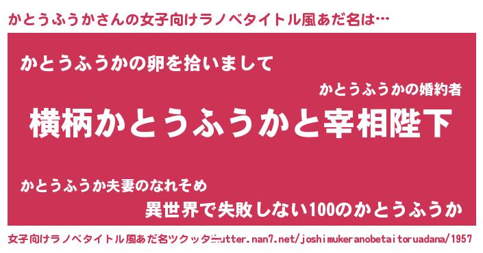 | 男性向けラノベタイトル風あだ名 | 『かとうふうかに滅ぼされるだけの簡単なお仕事です』 |