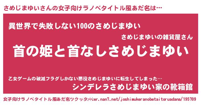 | 胡散臭い通販商品みたいなあだ名 | 『絶対に幸福をもたらす健康食品…その名も「さめじまゆい」』 |