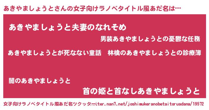 | 男性向けラノベタイトル風あだ名 | 『魔弾の王とあきやましょうと』 |
