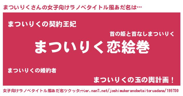 | 男性向けラノベタイトル風あだ名 | 『ノーゲーム・ノーマツイリク』 |
