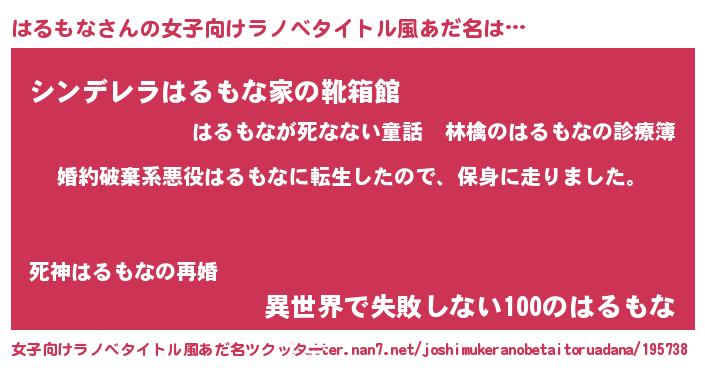 | 胡散臭い通販商品みたいなあだ名 | 『絶対に幸福をもたらす健康食品…その名も「はるもな」』 |