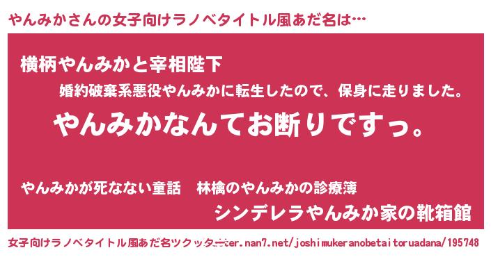 | 意味不明あだ名 | 『自称やんみか』『つくし科やんみか属』 |