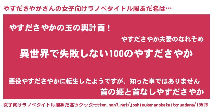 | 胡散臭い通販商品みたいなあだ名 | 『絶対に幸福をもたらす健康食品…その名も「やすださやか」』 |