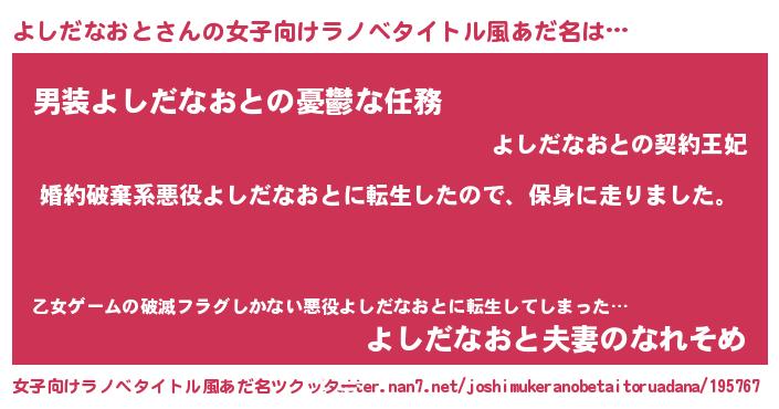 | 男性向けラノベタイトル風あだ名 | 『転生したらよしだなおとだった件』 |