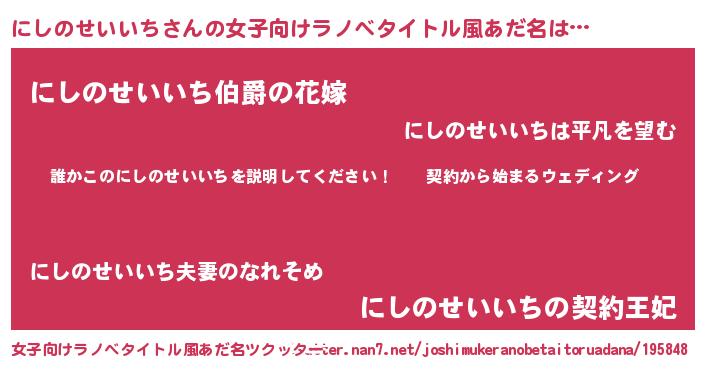 | ヒーロー風カッコイイあだ名 | 『スーパーニシノセイイチ』 |
