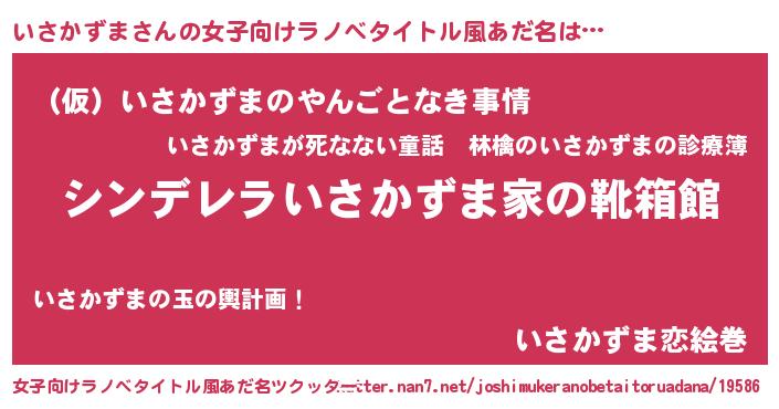 | 男性向けラノベタイトル風あだ名 | 『緋弾のイサカズマ』『いさかずまの憂鬱』 |